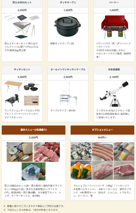 BBQ食材セットも販売してます。