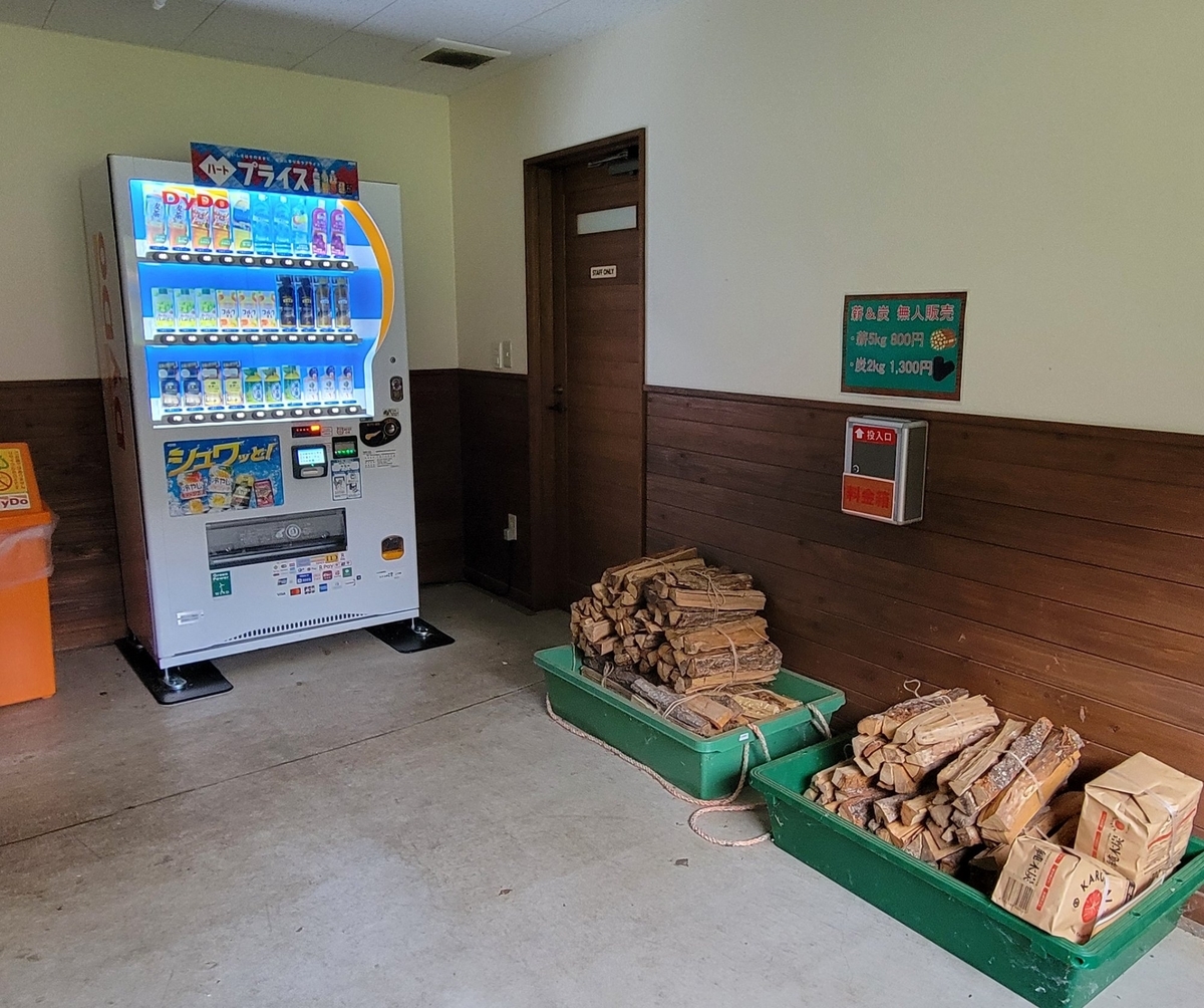 ヒルトップには自販機と薪販売があります。