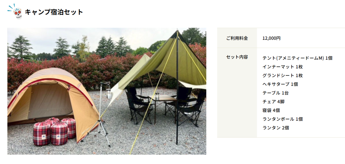 引用元:レンタル・販売品|オートキャンプ|千葉県成田で廃校グランピング&オートキャンプ【公式】TACO GLAMP THE MEXICO愛犬同伴可能