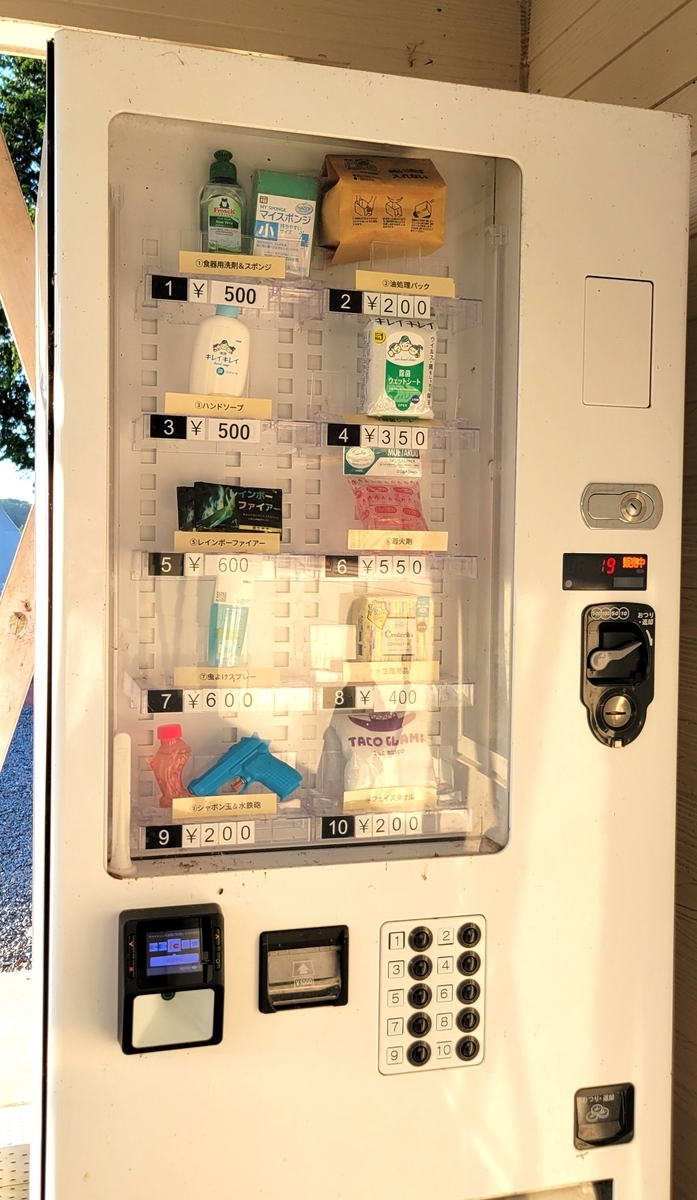 キャンプサイトには飲み物、アイス、雑貨の自販機があります。