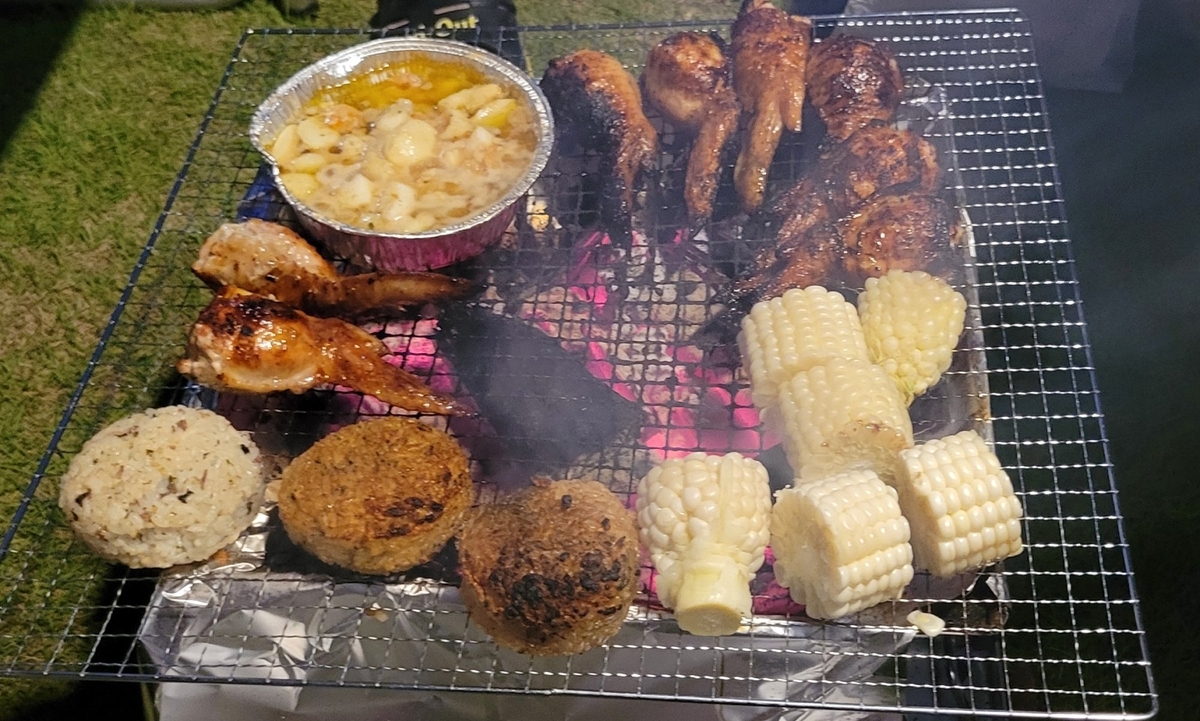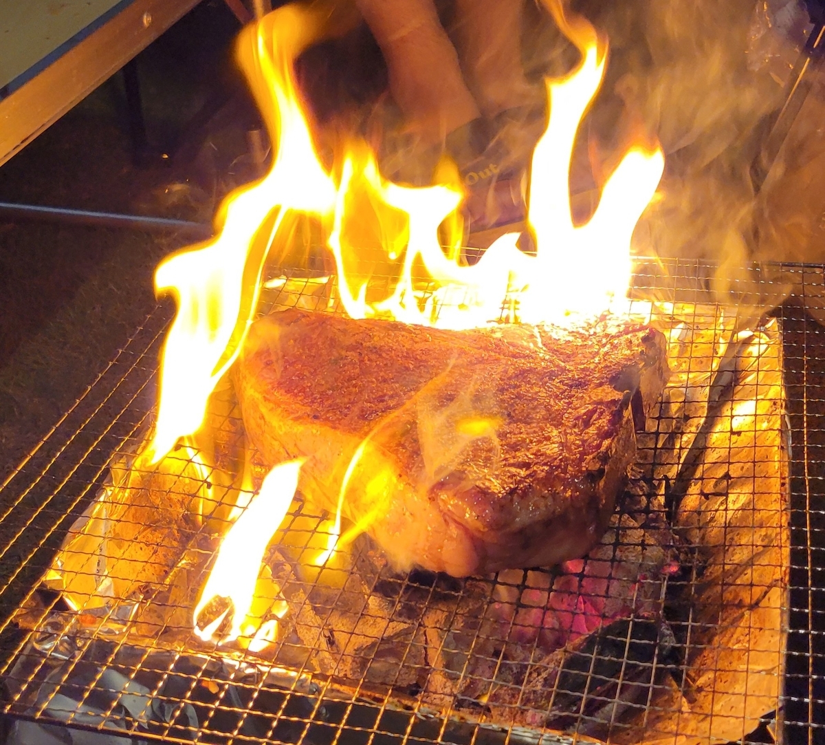 今日のキャンプ飯はでかい肉と手羽餃子です。